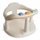 L’Anneau de bain aquababy noisette clair Thermobaby est un siège de bain conçu pour accompagner les premiers bains assis de bébé, à partir du moment où il sait se tenir assis seul jusqu’à ce qu’il tente de se lever. Il offre un maintien enveloppant grâce à sa forme ronde avec dossier et accoudoirs, et sécurise l’enfant avec une surface antidérapante et 4 ventouses puissantes pour une fixation stable dans la baignoire. Trois petits jeux éducatifs intégrés à l’avant participent à l’éveil de bébé et rendent le moment du bain plus agréable. Léger, compact et facilement transportable, il s’intègre facilement dans la salle de bain et se retire aisément grâce aux languettes prévues pour décoller les ventouses. Ce produit est fabriqué en France et répond à la norme EN 17022:2018 relative aux articles de bain pour enfants.
