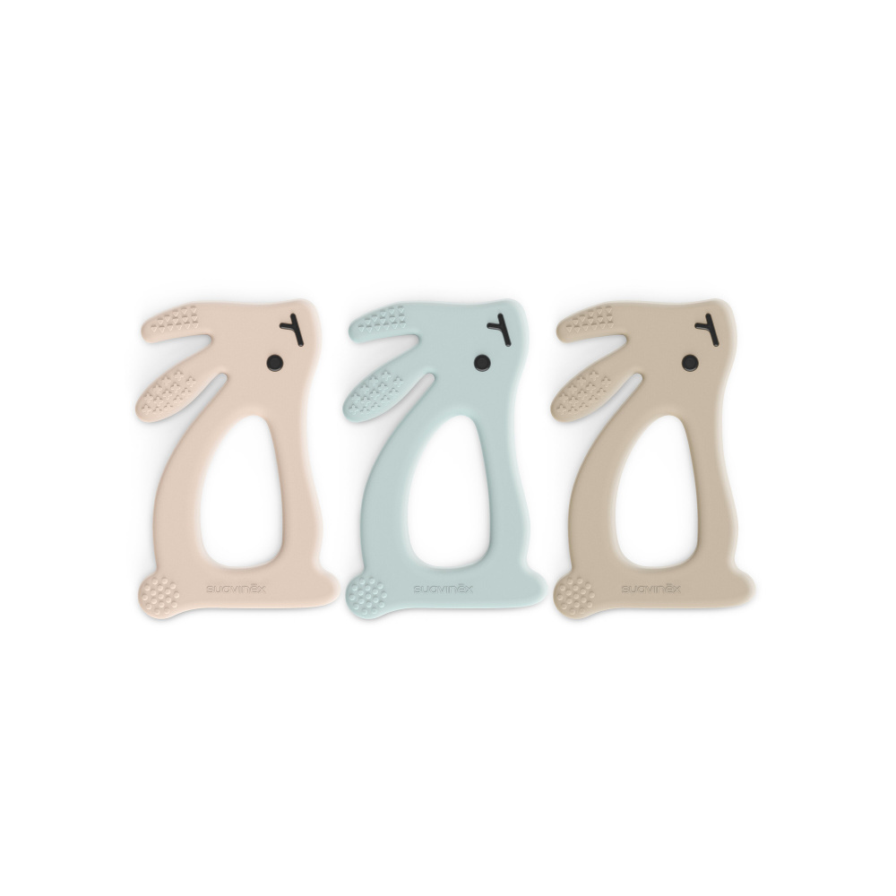 Cet Anneau de dentition silicone lapin de la marque Suavinex est spécialement conçu pour apaiser les gencives sensibles des tout-petits lors des premières poussées dentaires. Entièrement fabriqué en silicone souple, il offre une prise en main facile grâce à sa forme ergonomique. Adapté dès la naissance, il aide bébé à soulager son inconfort tout en garantissant sécurité et durabilité. La couleur varie aléatoirement entre rose, bleu ou beige, pour une touche douce et ludique.