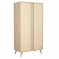 - Composition : Dessus, Dessous, séparation verticale, montant décor, 6 tablettes intérieures et 2 ôotés en panneaux de particules mélaminés décor Chêne Sépia, chants décor bois. 2 portes en panneaux de particules mélaminés décor Crème, chants décor bois. Derrières en panneaux de fibres minces décor 1 face chêne doré. Portes sur charnières invisibles, avec butées amortissantes. 4 Pieds obliques en hêtre lasurés blanchis. 2 petites tringles penderies.