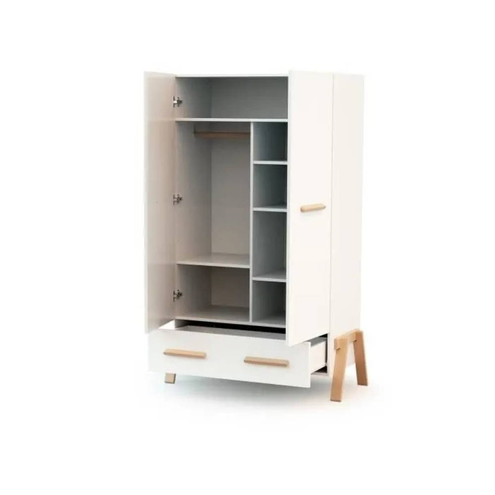 Rangez facilement grâce à l'Armoire canaille blanc et hêtre de la marque AT4. Cette armoire à 2 portes en bois vous aidera dans votre organisation. Cette armoire est composée de 6 étagères dont 4 réglables en hauteur, une penderie et un grand tiroir inférieur. Un espace de rangement spatiaux et idéal pour que votre enfant range ces vêtements. Livré en kit, cette armoire au style moderne s'intégrera facilement à la décoration de la chambre de votre bébé.