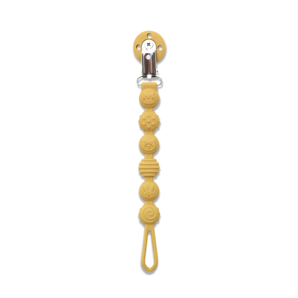 L’Attache sucette silicone rose Lorelli est conçue pour éviter que la sucette de bébé ne tombe, ne se salisse ou ne se perde, en assurant une fixation sûre et pratique sur la tenue de l’enfant grâce à une pince adaptée. Elle est ornée de petites frimousses d’animaux (chaton, ourson, lapin) et propose différentes textures pour stimuler le sens du toucher de bébé.