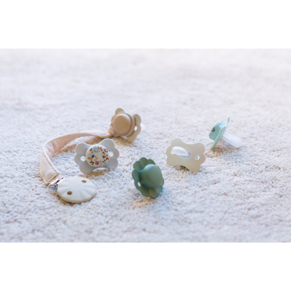 L’attache sucette ruban Wonderland de la marque Suavinex est conçue pour garder la sucette de bébé propre, à portée de main, et toujours bien fixée aux vêtements. Elle évite que la sucette ne tombe, ne se salisse ou ne se perde tout au long de la journée. Sa broche est protégée par une plaque en silicone douce, garantissant sécurité et confort, tandis que l’anneau en silicone maintient fermement la sucette en place. Reliée par un ruban léger et souple orné d’un élégant motif, cette attache allie praticité et style avec finesse. Facile à nettoyer à l’eau chaude savonneuse, elle est conçue pour durer sans nécessiter de traitements agressifs.