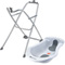 Cette baignoire Anatomy de Tigex est évolutive, elle accompagnera votre enfant de la naissance jusqu’à 18 mois. Cette baignoire accompagnée de son trépied sera l’allié de la toilette de bébé mais aussi le celui des parents ! En effet grâce aux échancrures sur la baignoire, au trépied ainsi qu’au porte savons et flacons de gel douche, les parents seront à la bonne hauteur pour laver bébé mais pourrons garder un œil sur bébé car ils auront le nécessaire à portée de main !