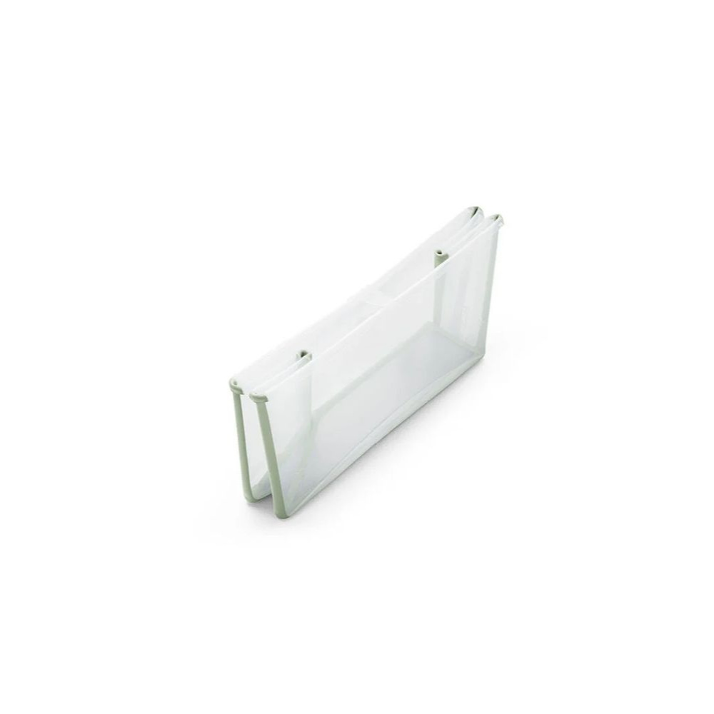 Baignoire flexi bath verte de la marque Stokke. Ce produit est une baignoire pliable pour enfants qui peut être utilisée dès la naissance et jusqu’à quatre ans.