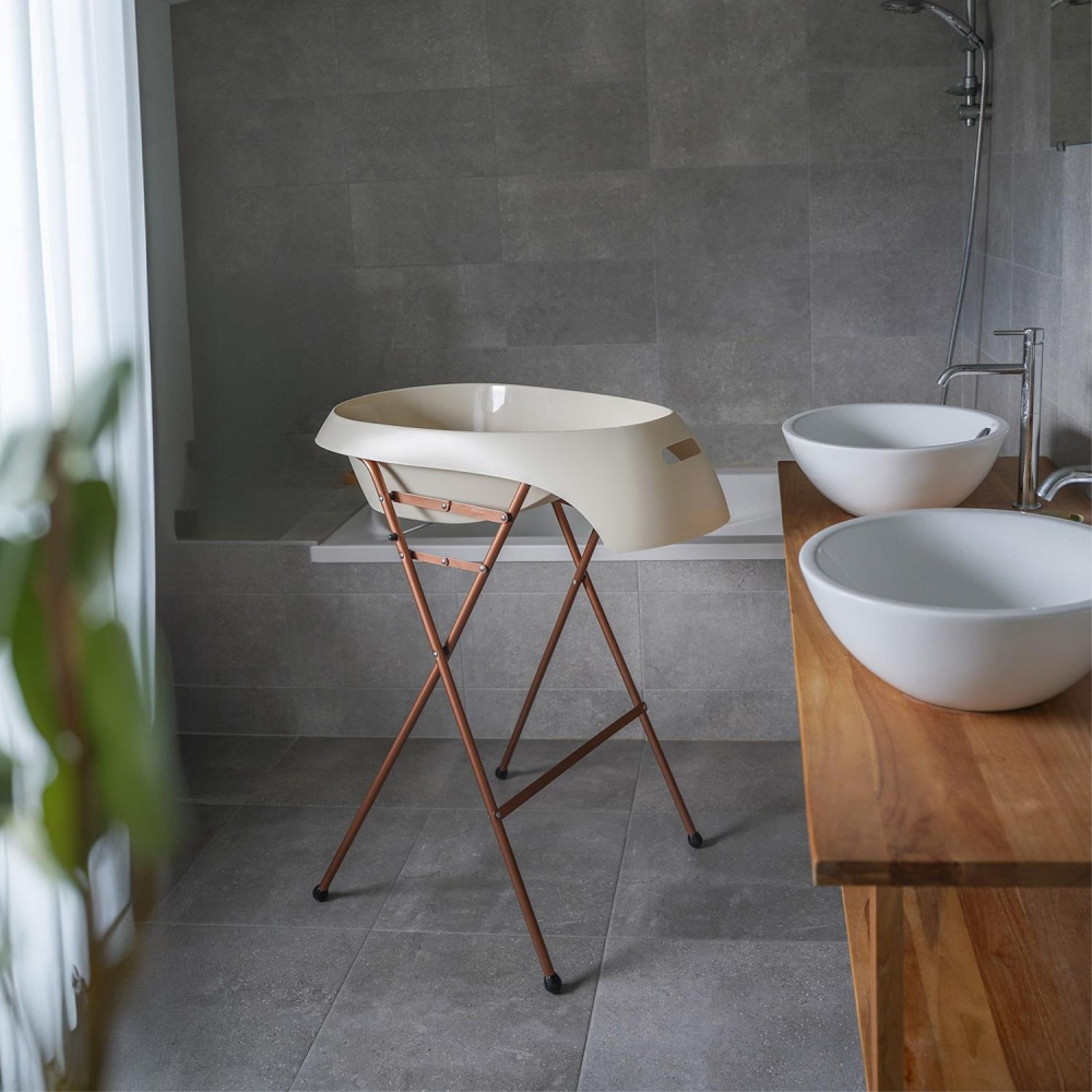 - Matériaux : acier pour le pied + polypropylène (PP) pour la baignoire.