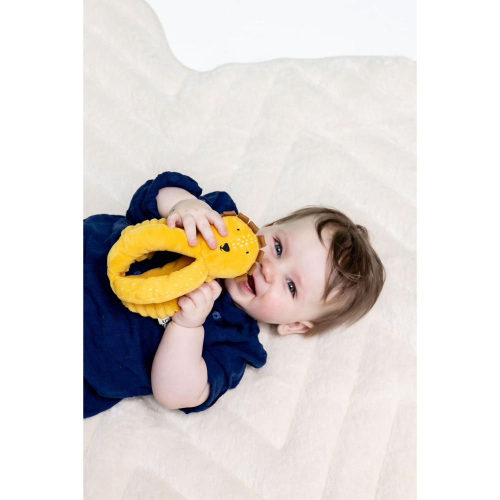 La balle de préhension Mr. Lion de Trixie accompagne bébé dans ses premières découvertes sensorielles. Facile à saisir, douce au toucher et amusante à manipuler, elle émet un bruit de papier froissé qui attire l’attention et stimule la curiosité. L'enfant apprend à attraper, lancer et échanger la balle entre ses mains, développant ainsi sa motricité fine et sa coordination tout en s’amusant.