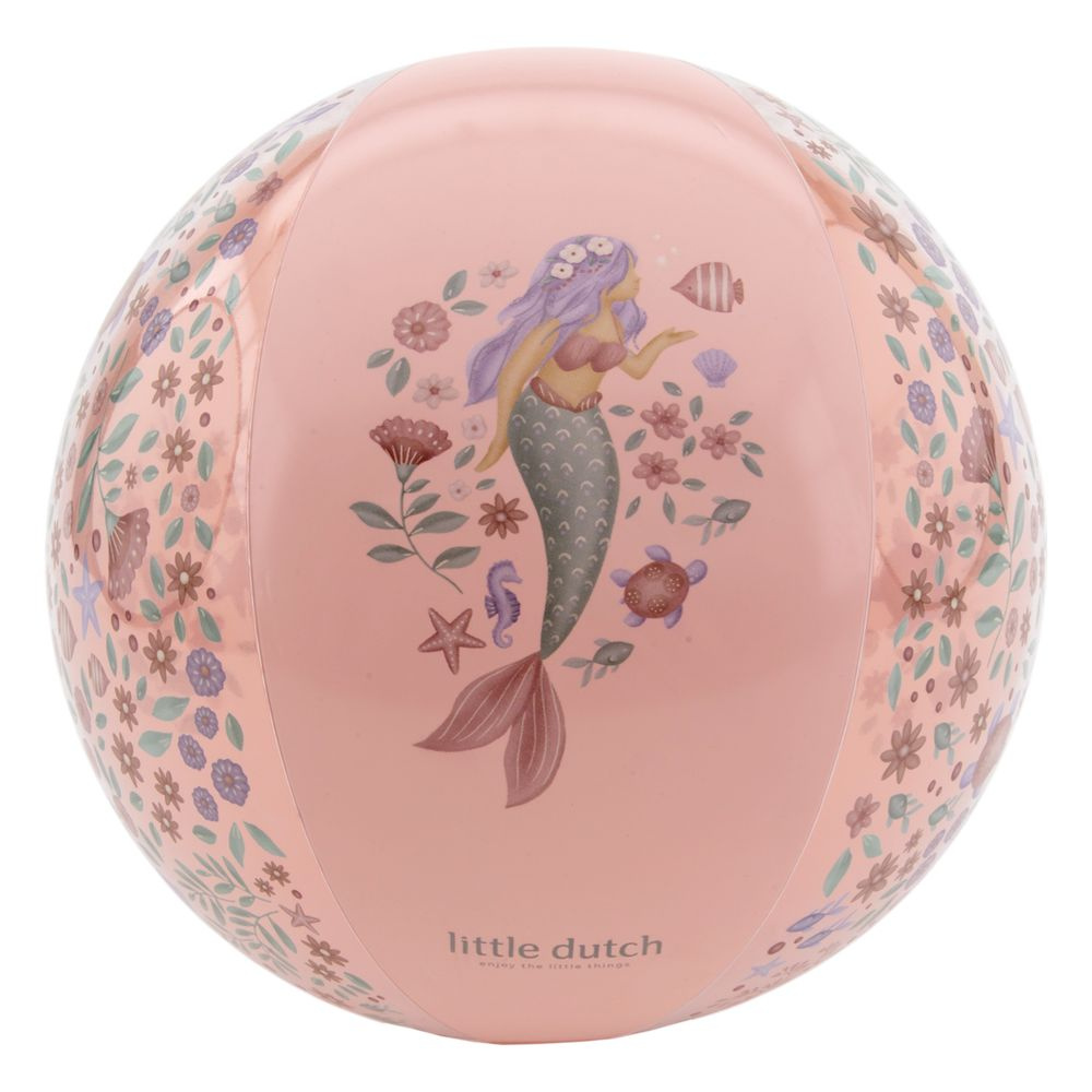 Le ballon de plage Dreamy Mermaid 35 cm de Little Dutch est idéal pour accompagner les moments de jeu en extérieur. Léger et coloré, il invite bébé et les enfants à s’amuser tout en développant leur motricité.