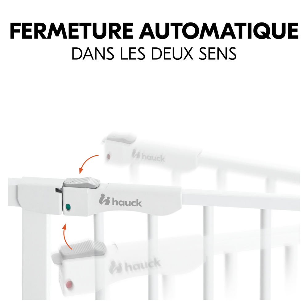 La Barrière d'escalier clear step autoclose 2 avec extension +21 cm white de la marque Hauck. Idéale pour une sécurité sans faille ! Dotée d'une barrière de sécurité de 75-80 cm ou 96 à 101 cm avec l'extension de 21 cm incluse et extensible jusqu'à une largeur de 122cm en option, elle retiendra votre enfant avant que celui-ci ne tente de faire des bêtises. L'ouverture est sûre et la fermeture se fait automatique. La barrière de sécurité est facile d'utilisation et d'installation. En effet, elle se fait rapidement, avec de simples pressions sans besoin de perçage.