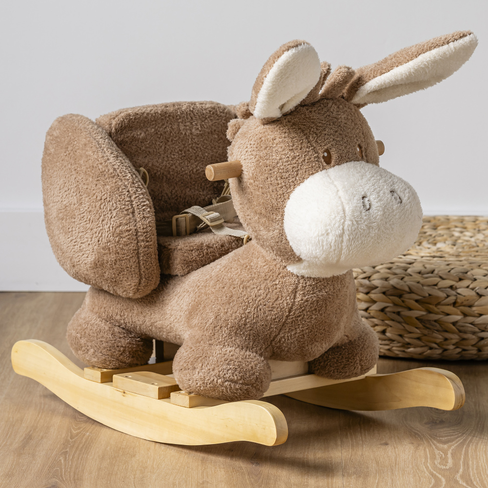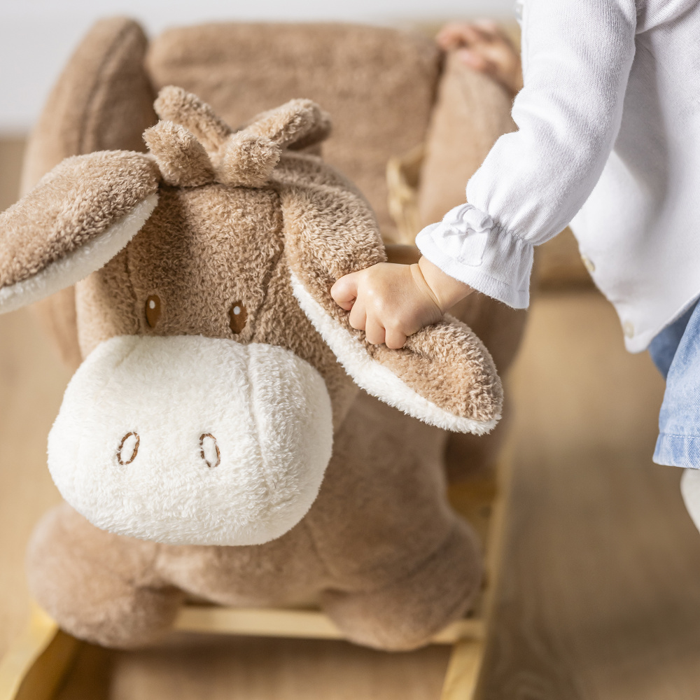 La Bascule léo l'âne est réalisée dans une matière très douce. Grâce à la ceinture, bébé s’amusera en toute sécurité. La bascule s’utilise de 10 à 36 mois.