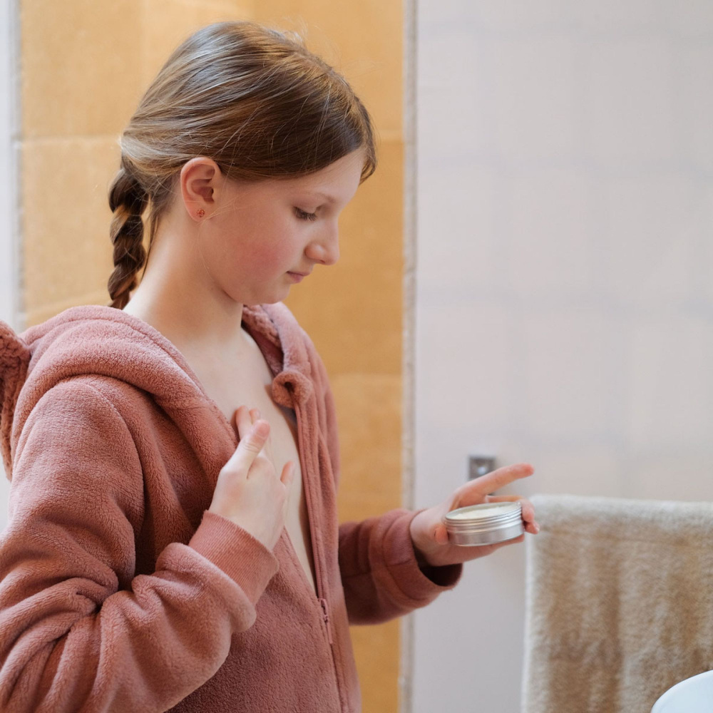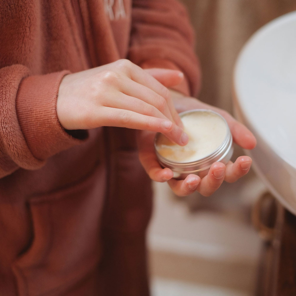 - Hydratation et soin de la peau grâce au beurre de karité et à l’huile de jojoba