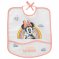 Découvrez le joli Bavoir imperméable Minnie de la marque Babycalin. Ce bavoir est aussi tendance que pratique avec son rammasse miettes intégré. C'est l'accessoire indispensable pour ne pas salir les vêtements de votre enfant.