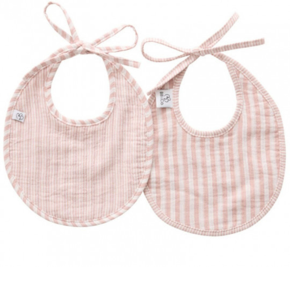 - Lot de 2 bavoirs gaze de coton - soft stripes vieux rose