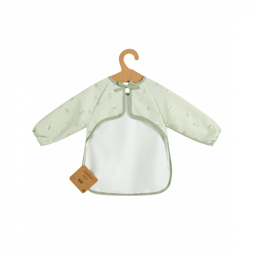Bavoir tablier à manches vert de la marque Combelle. Le bavoir s'attache via un nœud au niveau de la nuque de votre enfant. Pour décorer le bavoir, il y a des petits motifs enfantins. Ce produit à manches longues s'enfile facilement. Le bavoir évitera à votre enfant de se tâcher.