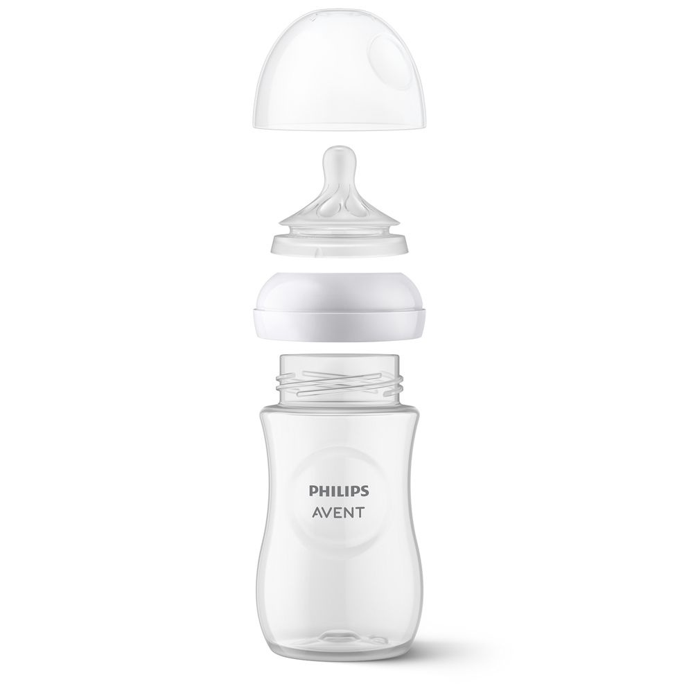 Le biberon natural response est doté d'une tétine ultra-douce dont les caractéristiques se rapprochent plus de celles du sein. Cette large tétine imitant la forme du sein présente un design flexible en spirale et des alvéoles de confort pour permettre une tétée naturelle et faciliter l'alternance sein/biberon.