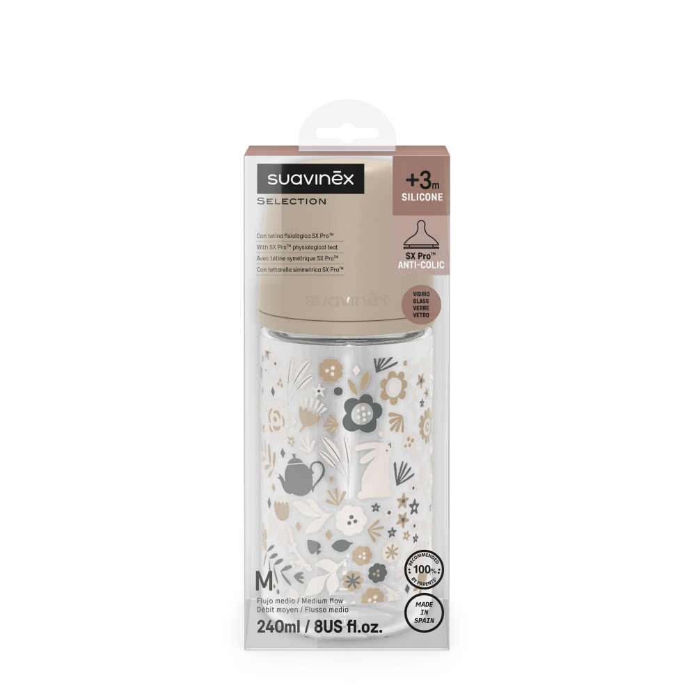 Biberon verre 240 ml avec tétine sx pro m wonderland beige