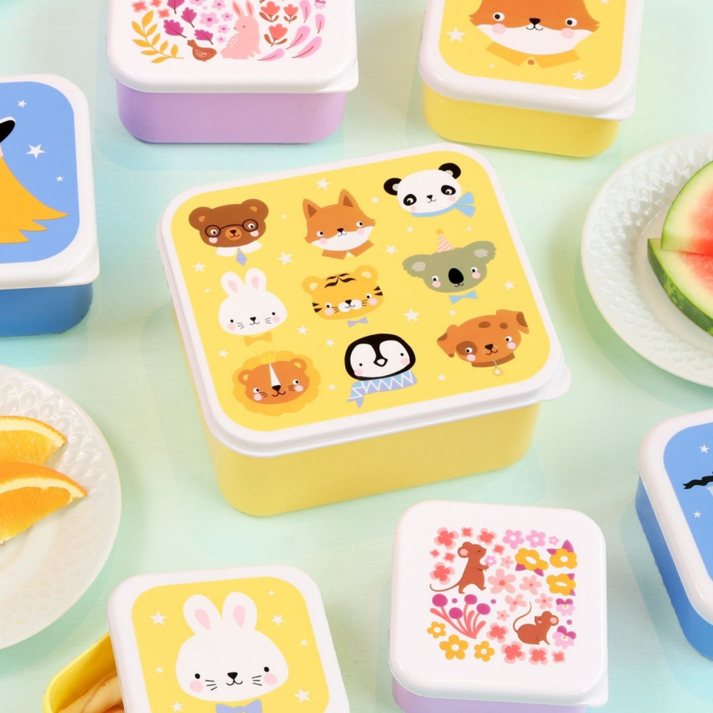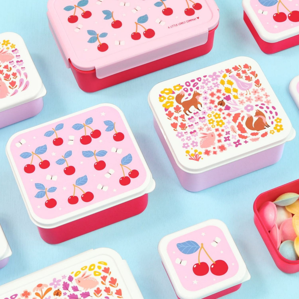 Découvrez les Lot de 4 boîtes à goûter amis de la forêt vert de la marque A Little Lovely Compagny pour ranger vos encas préférés dans les boîtes de ce set complet lunch et snack box décoré. Emportez facilement des fruits, des crudités, des biscuits, des bonbons et des sandwichs dans ces boîtes. Ces lovely lunch et snack box sont disponibles en set de quatre tailles différentes, et sont toutes décorées. Pratique pour l’école, la voiture ou pour une excursion.