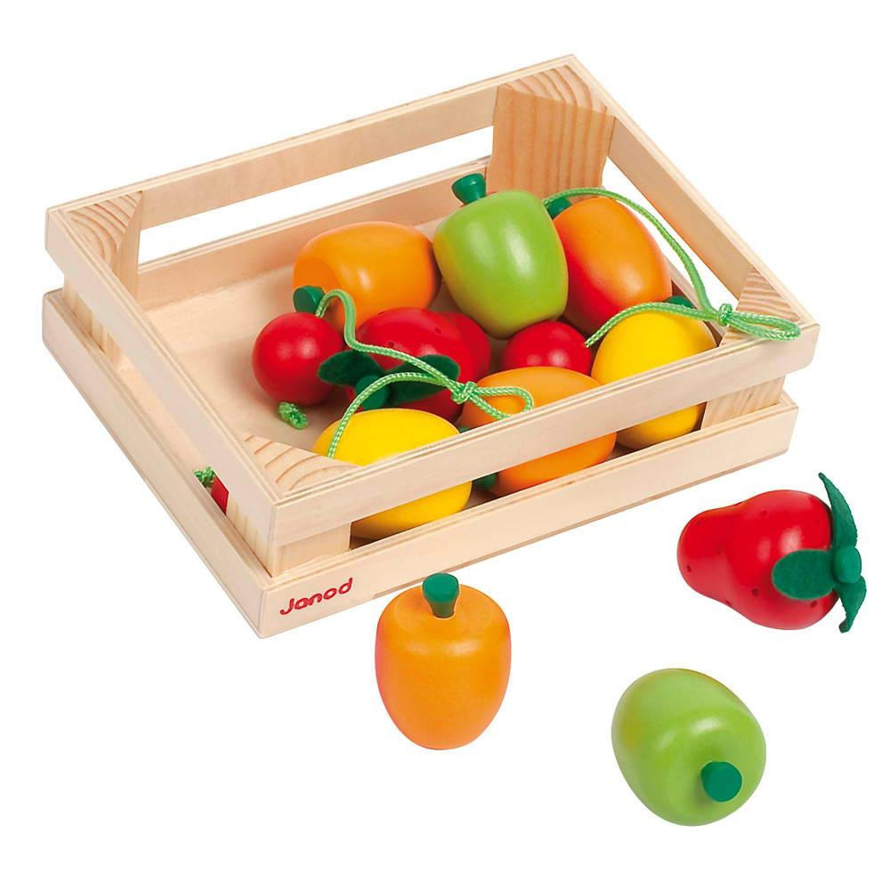 Cagette de 12 fruits en bois de la marque Janod. Cette jolie cagette en bois contient 2 fraises, 2 citrons, 2 pommes vertes, 4 cerises, 2 bananes et 2 oranges. Parfait pour que votre enfant développe son imagination tout en s'amusant. Ce jeu amusera votre petit toute les jours !