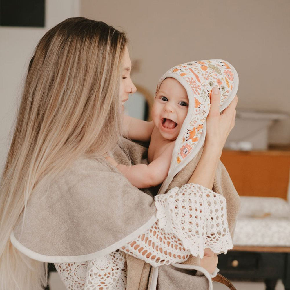 Découvrez la Cape de bain tablier forêt enchantée de chez Néobulle. Elle sera parfaite pour sortir bébé du bain en toute tranquillité. Elle s’attache autour du cou du parent comme un tablier pour garder les mains libres et rester au sec. Douce et pratique, elle sèche bébé avec son côté bambou ultra absorbant, puis le réchauffe avec sa face polaire toute douce. Un vrai moment de tendresse, sans stress ni éclaboussures !