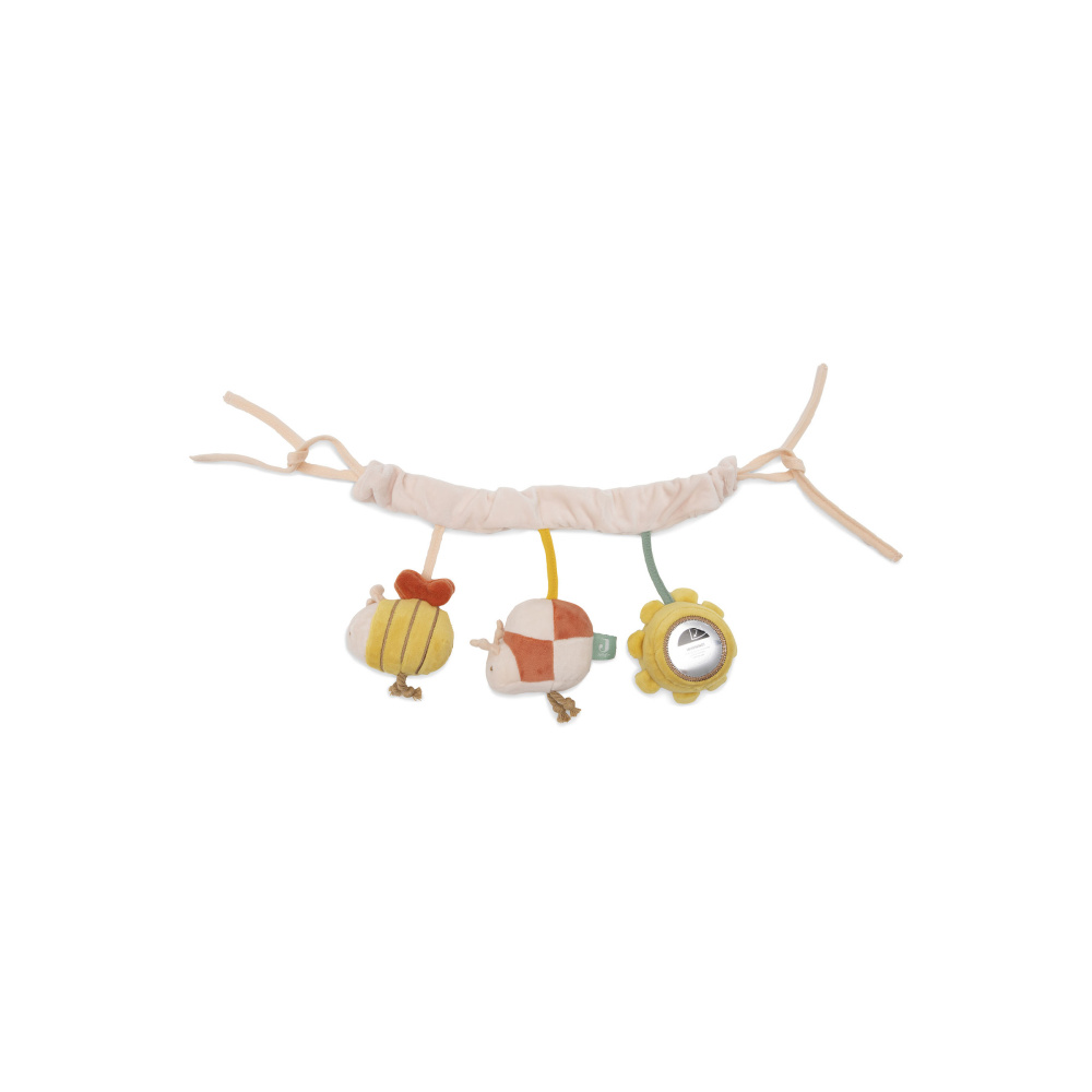 Optez pour la Chaîne d'activités pretty picnic de la marque Jollein. 3 peluches composent cette spirale : une étoile de mer, une baleine et un phoque. Elle sera facilement transportable pour vos promenades et elle divertira votre enfant durant de longues heures. Elle s'attachera autant à la poussette qu'au landau, au siège auto ou même au parc d'activités.