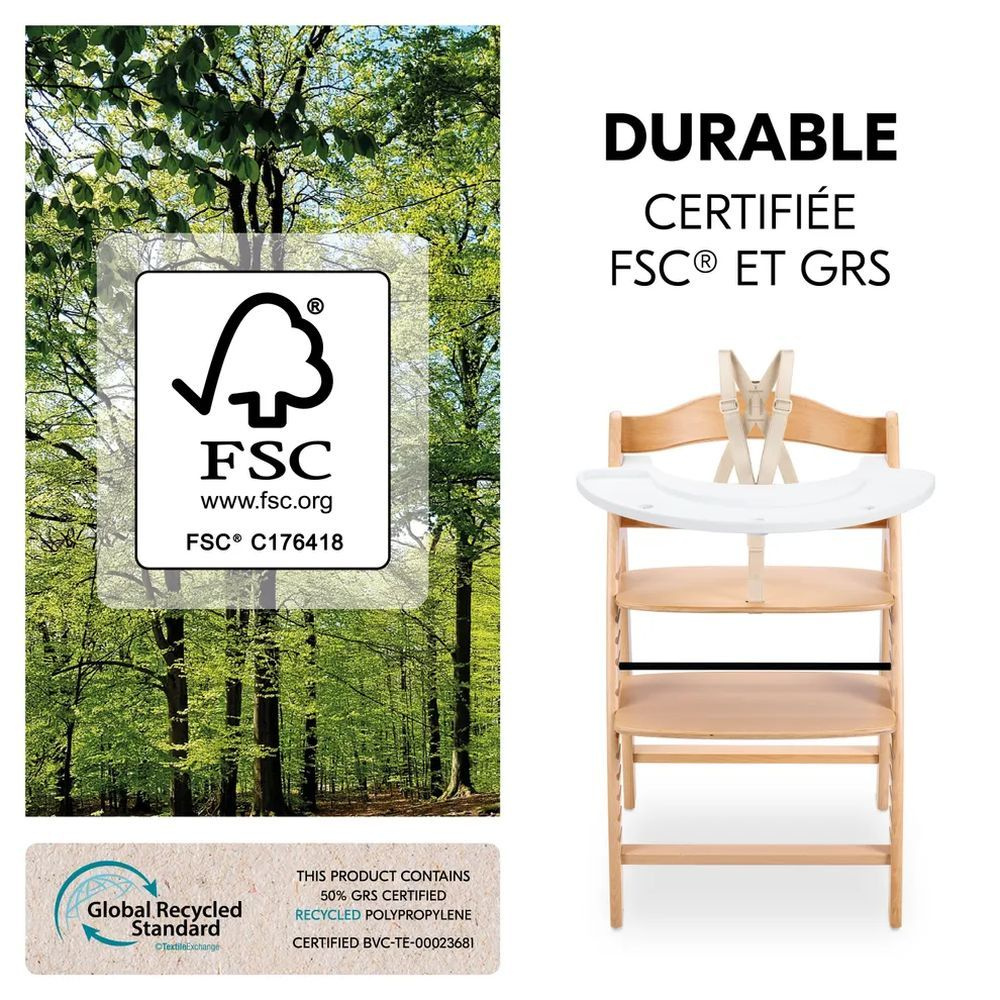 La chaise haute évolutive Arketa N Play de la marque Hauk est l'accessoire idéal pour que votre enfant soit confortablement installé. Il pourra donc partager les repas et moments importants avec toute la famille dans sa jolie chaise en bois. Le bois est de l'hêtre européen issu d'une exploitation durable. On recherche toujours le meilleur pour offrir à son enfant, la chaise évolutive allie sécurité, confort et geste éco-responsable... un bon petit mélange ! La chaise Arketa est évolutive et peut assurer votre enfant tout au long de sa croissance : de 6 mois à 130kg. Cette chaise a été conçue pour offrir une sécurité optimale, grâce à son design anti-basculement , mais aussi d'un harnais en 5 points, d'un arceau de sécurité et d'une sangle d'entrejambes. Pratique, vous pourrez ajuster l'assise et le repose pied pour plus de confort. Un plateau de jeu est aussi inclus avec cette chaise.