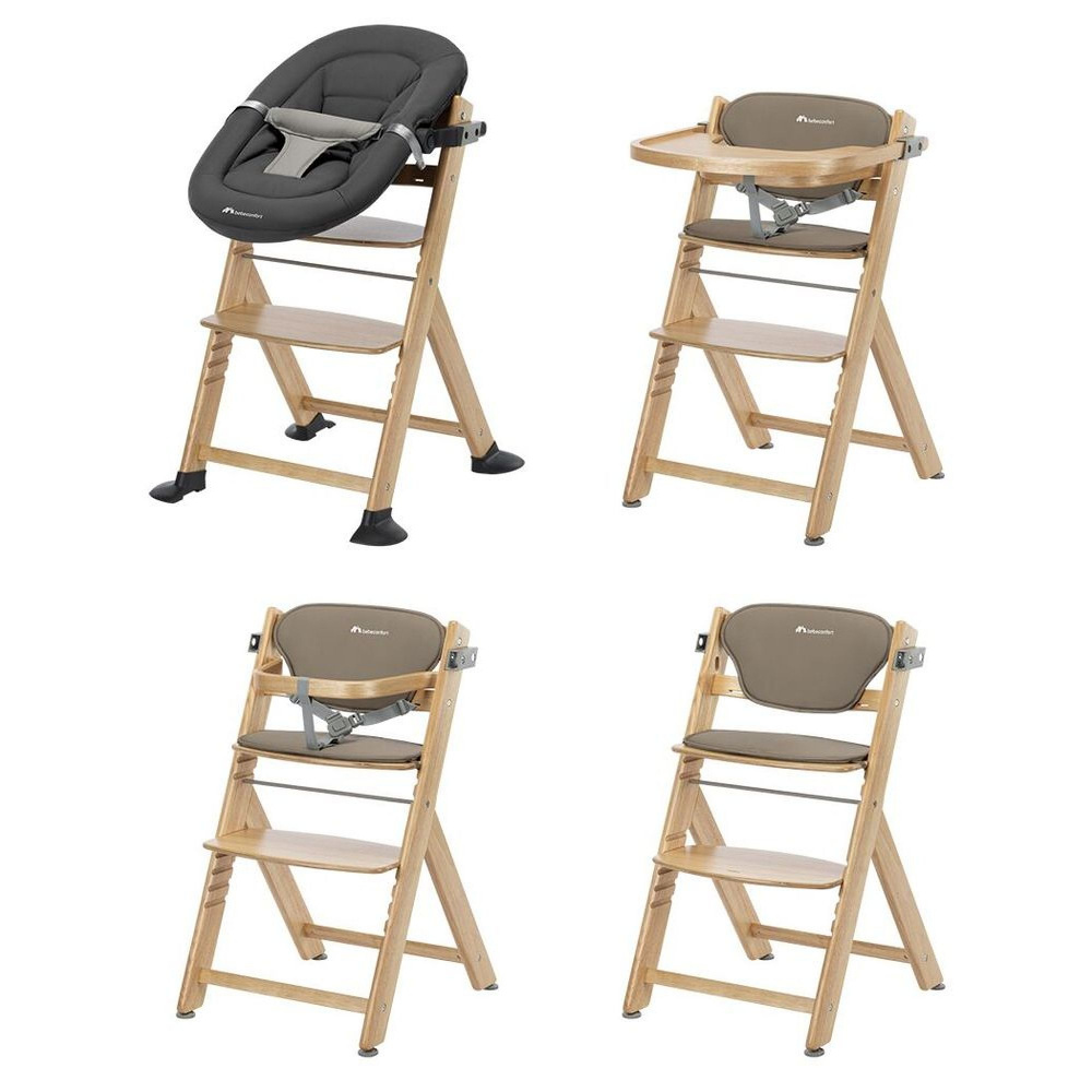 Chaise haute évolutive 2-en-1 timba ²wood avec coussin beige + transat tinted graphite