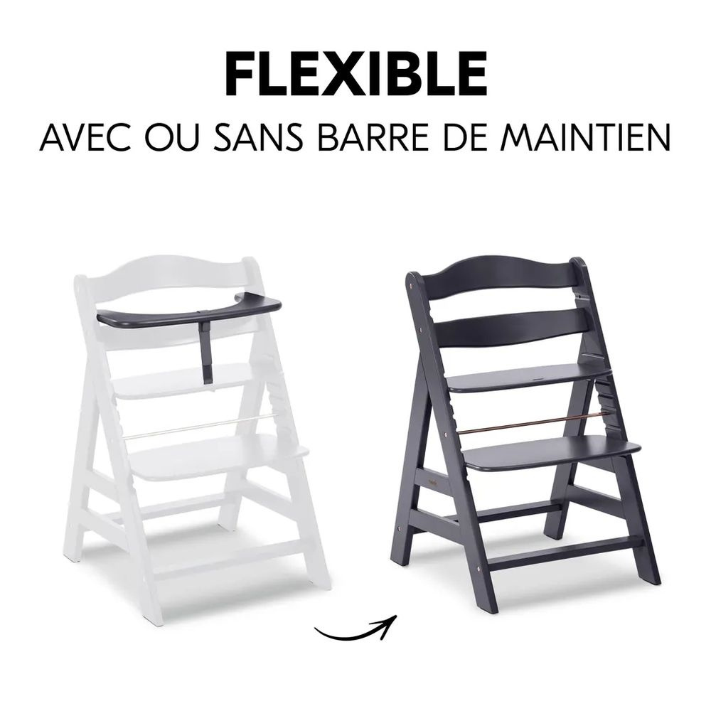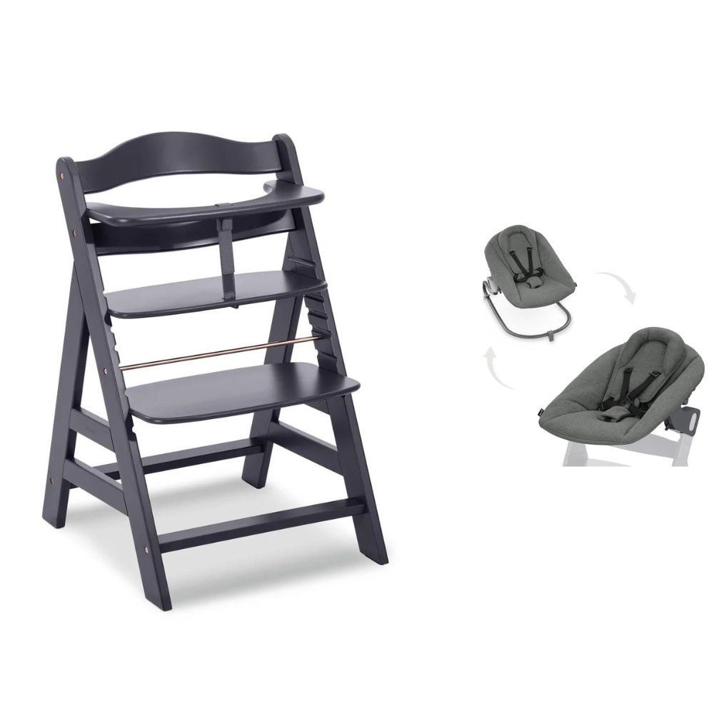 Chaise haute évolutive alpha noir + transat premium dark grey