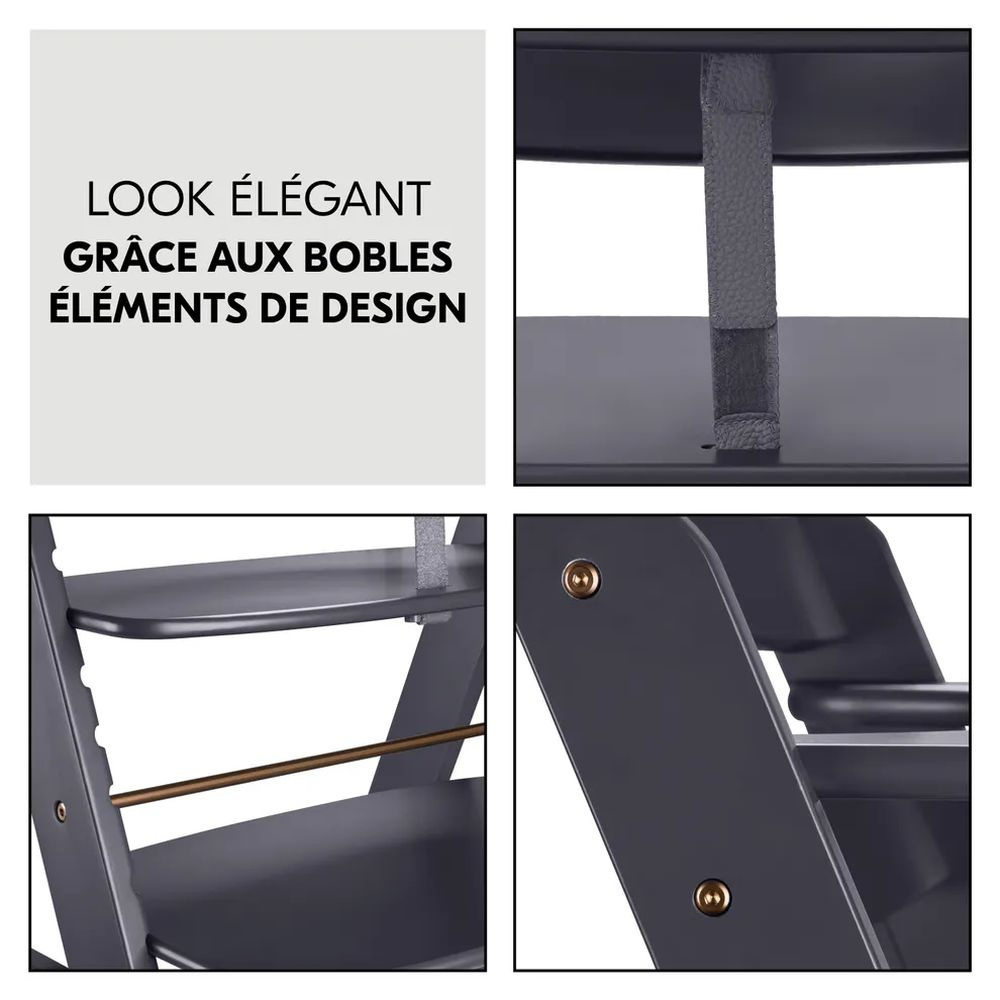 Caractéristiques de la Chaise haute évolutive alpha noir + transat premium dark grey:
