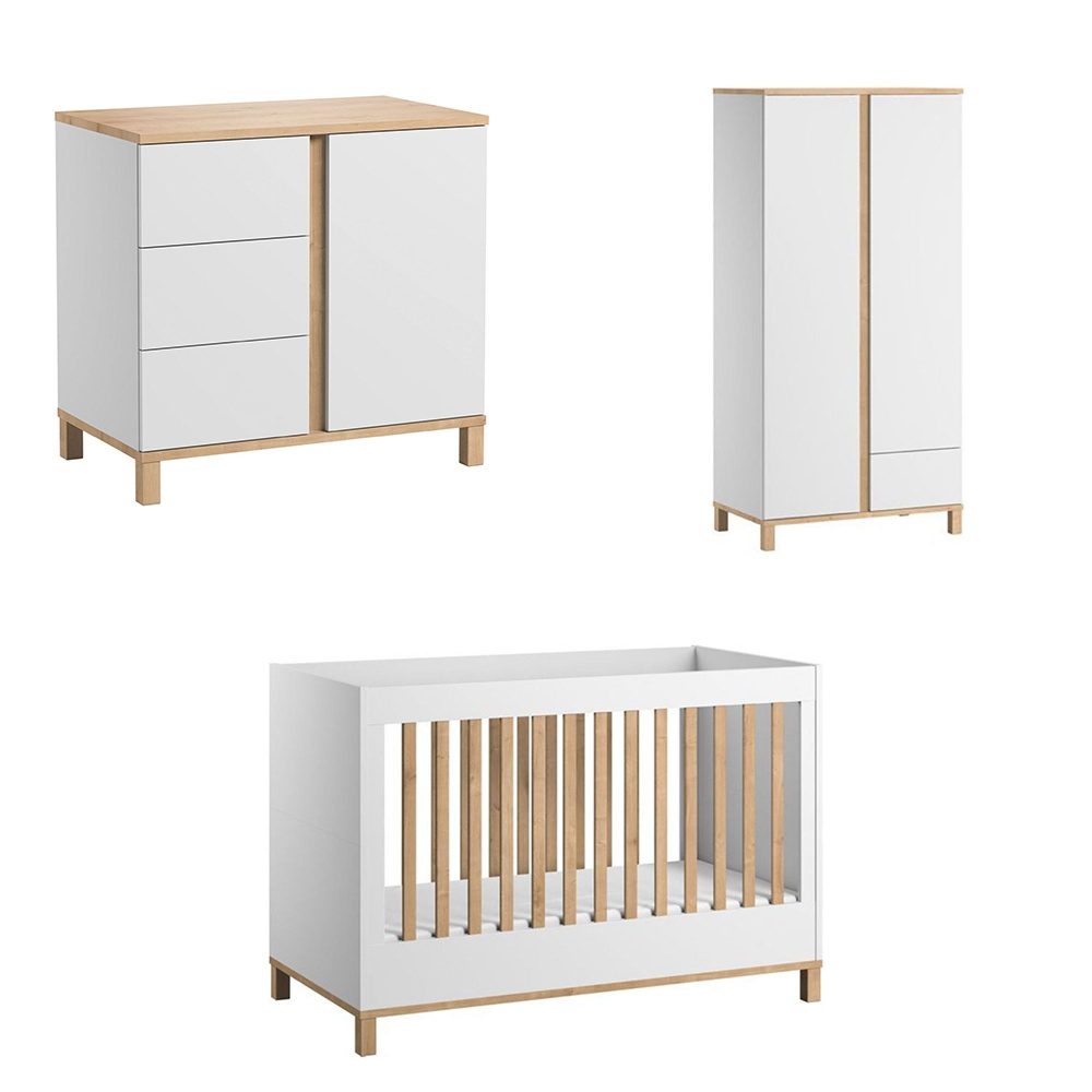 Chambre bébé trio lit 60x120 + commode + armoire blanc altitude