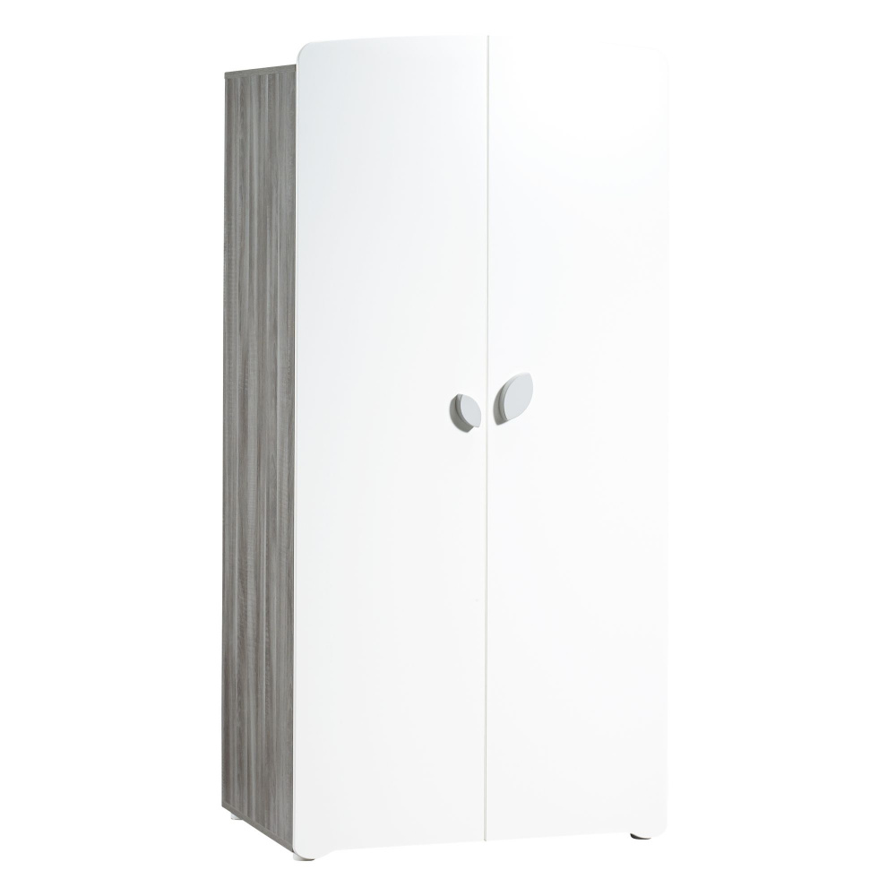 - Composition, matières: Panneau de fibres de moyenne densité (MDF) laqué blanc / Panneau de particules décor papier chêne silex / Panneau de fibres dures blanc / 2 boutons