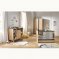 Tête et pied en panneaux de particules mélaminés décor chêne doré, chants décor bois. - Dimensions: 124 x 86 x 66 cm