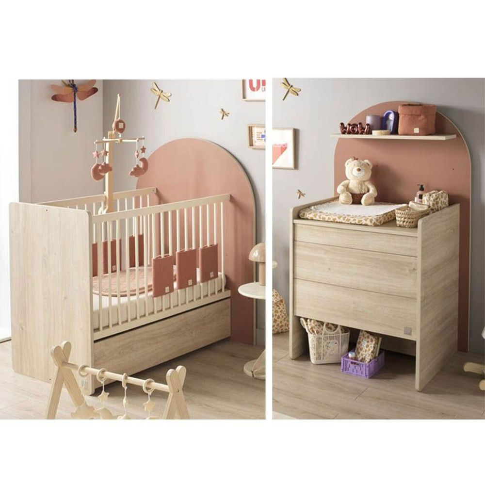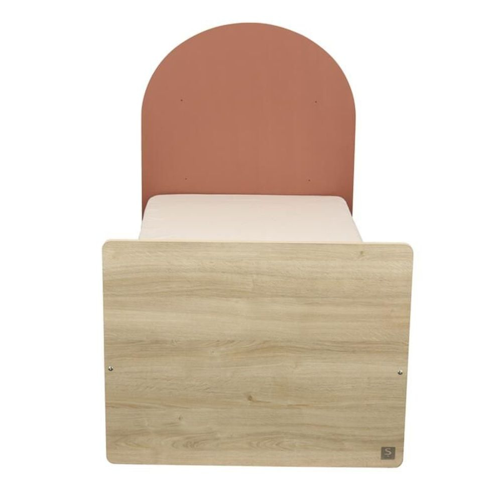 La Chambre duo arche lit transformable + commode/bureau terracotta de chez Sauthon. Ce lit évolutif est un investissement intelligent et durable. Conçu pour accompagner la croissance de votre enfant de sa naissance jusqu'à l'adolescence, il se distingue par son design doux et ses finitions soignées. Dans sa première étape, le lit offre tout le confort et la sécurité nécessaires pour un nouveau-né. Le sommier est réglable en hauteur (3 positions) pour préserver le dos des parents durant les premiers mois. C'est ici que la magie opère. Grâce au kit de transformation inclus , le lit de bébé devient un véritable lit d'adulte. Ce système évite d'avoir à racheter un nouveau mobilier au moment du passage au "grand lit".