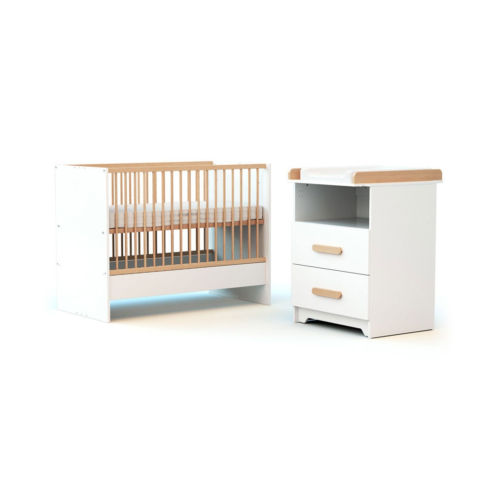 La Chambre duo gavroche lit évolutif 60x120 blanc et hêtre de chez AT4 ! Elle comprend un lit combiné 60 x 120 cm qui se transforme en lit junior 90 x 190 cm avec commode de rangement à tiroirs. Cela vous permettra d'accueillir votre bébé dès la naissance jusqu'à son adolescence. Le lit bébé et sa commode à langer peuvent s'utiliser ensemble ou séparément. Vous allez adorer le design sobre et chaleureux qui évolue au rythme de votre enfant.