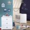 - Compositions, matières: Panneau de particules mélaminé blanc / Panneau de fibres de moyenne densité (MDF) laqué blanc / Panneau de fibres dures blanc / Boutons étoiles en hêtre laqués gris.