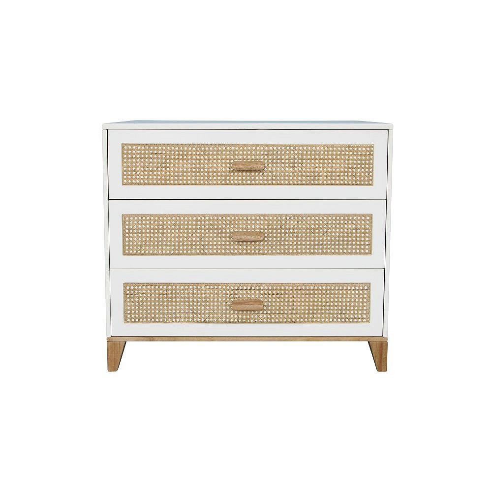 Vous serez séduit par la chambre Nami de la marque Théo. La marque Théo a fait le choix de privilégier le respect de la santé et de l'environnement : des finitions à base d'eau, sans odeur, sans solvants et sans émanation; des emballages sans plastique et dans le respect des normes françaises, européennes certifié par un laboratoire français indépendant. Elle convient autant pour une chambre de fille ou de garçon. Fabriqué en rotin naturel, le lit et la commode vous assurera solidité et durabilité. Évolutif, le lit accompagnera votre enfant durant sa croissance. Plus il grandit, retirez lui un des deux côtés avec les barrières, puis les deux lorsqu'il est suffisamment grand et rajoutez-lui à la place le kit évolutif. Ainsi votre berceau sera transformé en véritable lit de grand ! Avec la commode assortie, votre enfant sera plongé dans un univers tendance et épuré.