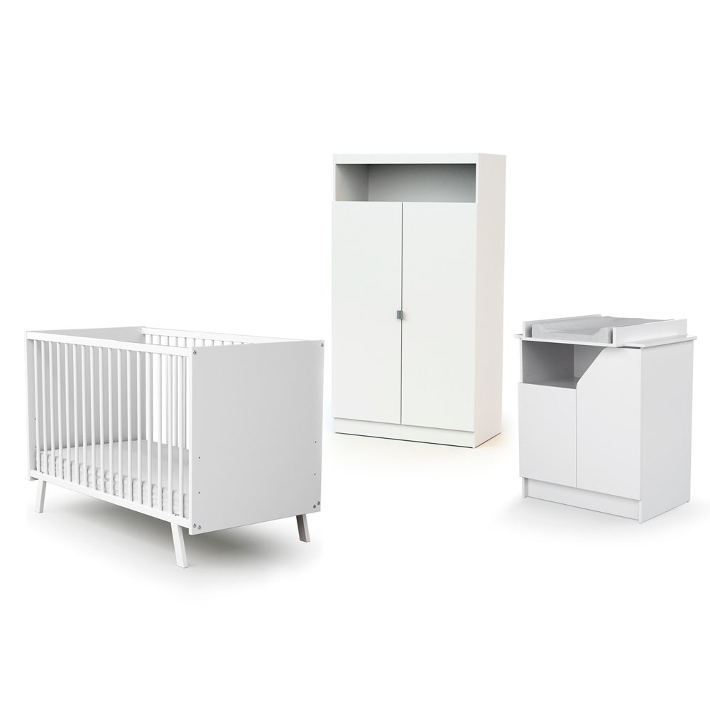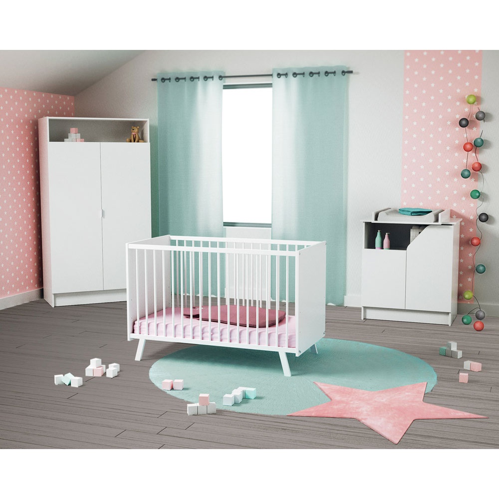 Chambre trio carnaval lit + armoire + meuble à langer blanc
