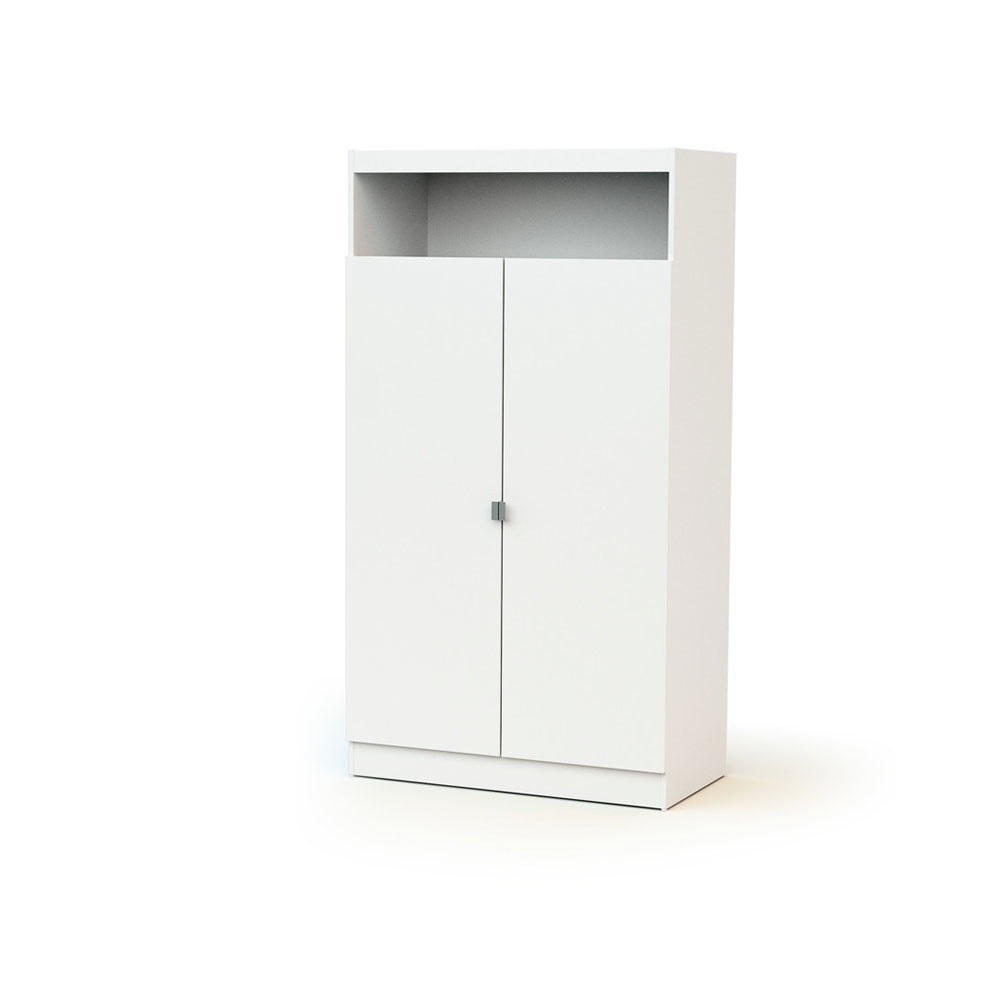 L'armoire sera parfaite pour ranger les affaires de votre enfant ! Cette armoire AT4 possède deux portes et une niche. À l'intérieur se trouve une penderie et six tablettes dont 4 réglables.