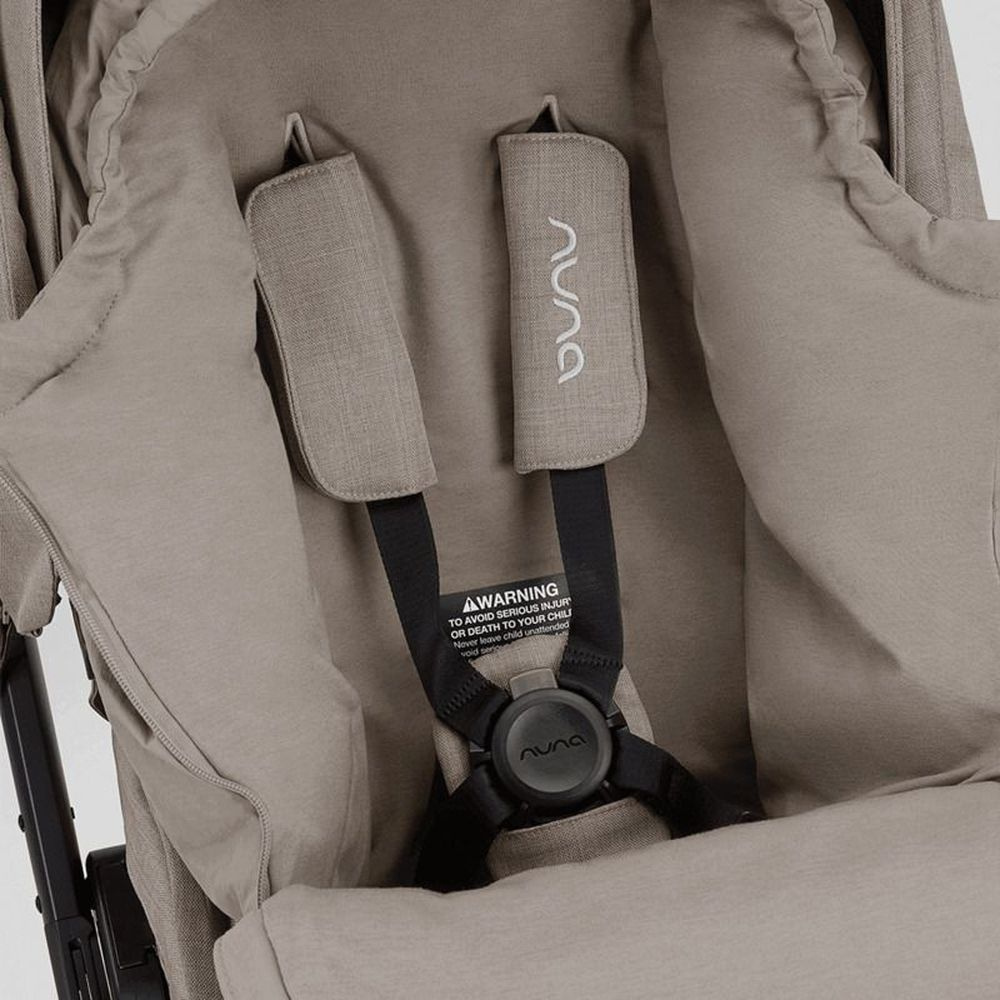 Chancelière et moufles pour poussette chateau de la marque Nuna. Ce kit complet vous accompagnera pendant vos promenades d'hiver. Ce produit maintiendra au chaud vos mains et votre bébé. La chancelière est très pratique avec son ouverture intégrale. L'intérieur de la chancelière et des moufles sont très doux. Au niveau des pieds dans la chancelière, il y a une protection intégrée pour les chaussures. Les moufles sont aimantées pour les fixer au guidon de la poussette.