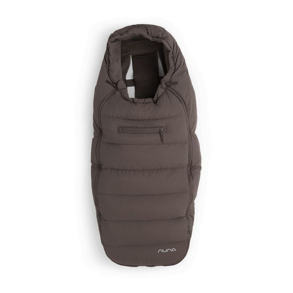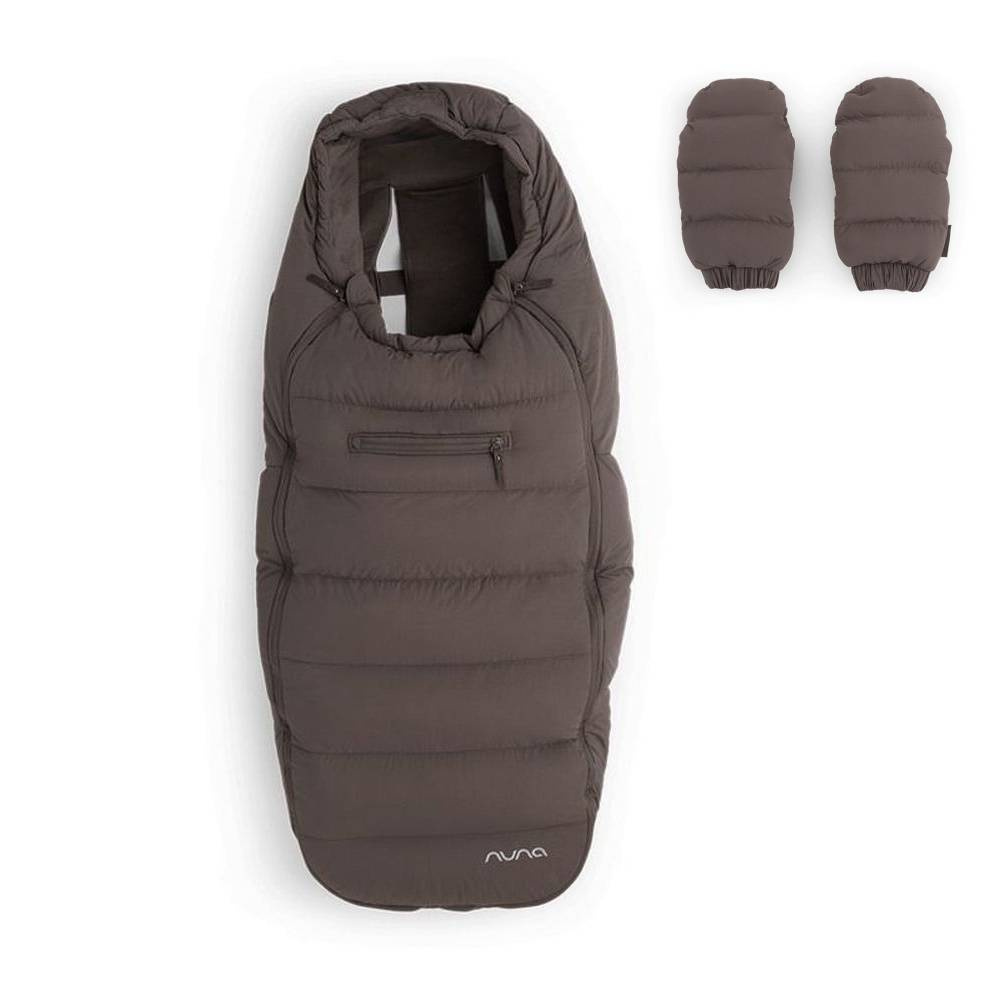 Chancelière et moufles pour poussette chestnut de la marque Nuna. Ce kit complet vous accompagnera pendant vos promenades d'hiver. Ce produit maintiendra au chaud vos mains et votre bébé. La chancelière est très pratique avec son ouverture intégrale. L'intérieur de la chancelière et des moufles sont très doux. Au niveau des pieds dans la chancelière, il y a une protection intégrée pour les chaussures. Les moufles sont aimantées pour les fixer au guidon de la poussette.