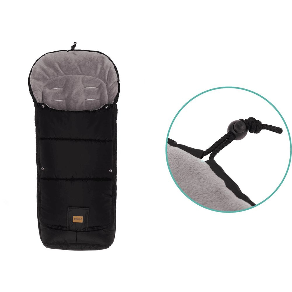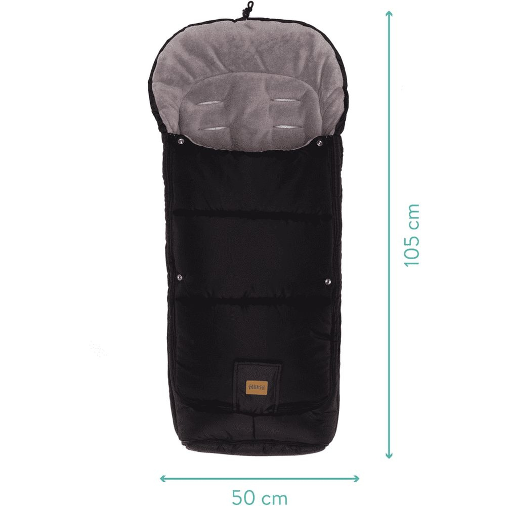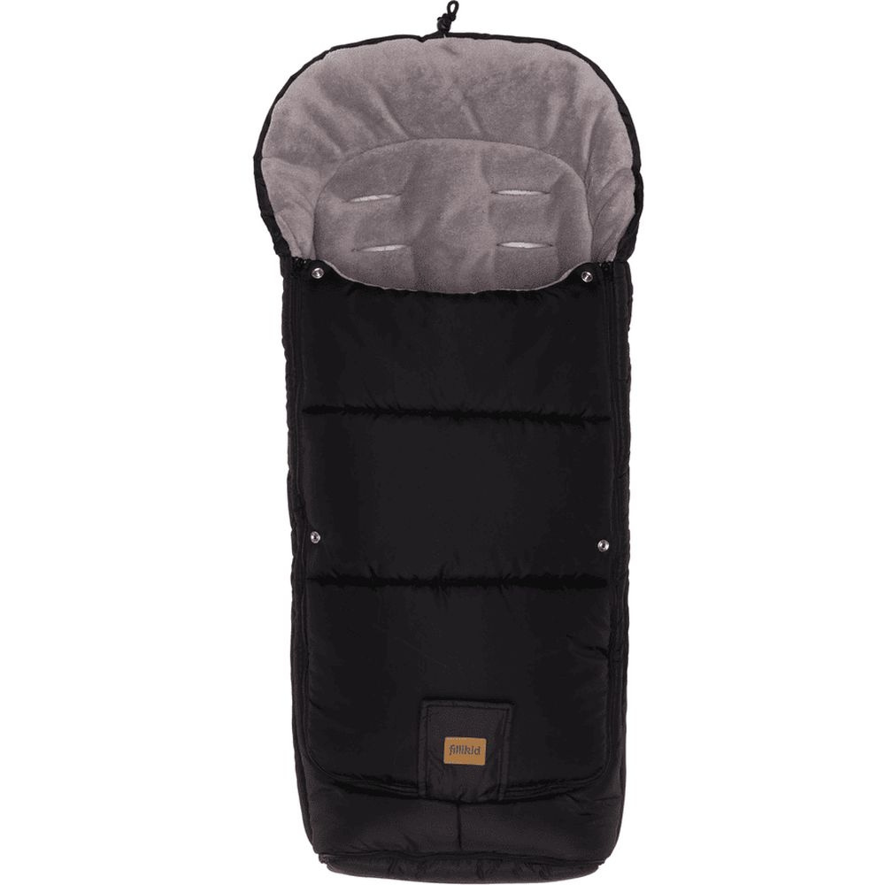 Chancelière universelle hiver peak noir de la marque Fillikid. Une ouverte par fermeture éclair est prévue au niveau des pieds. La fermeture de la chancelière est transversale. Pour bien tenir au chaud votre petit et éviter les courants d'air, la partie haute se referme. Ce produit parfaitement votre bébé du vent et de l'humidité. La chancelière peut se transformé en matelas très doux.