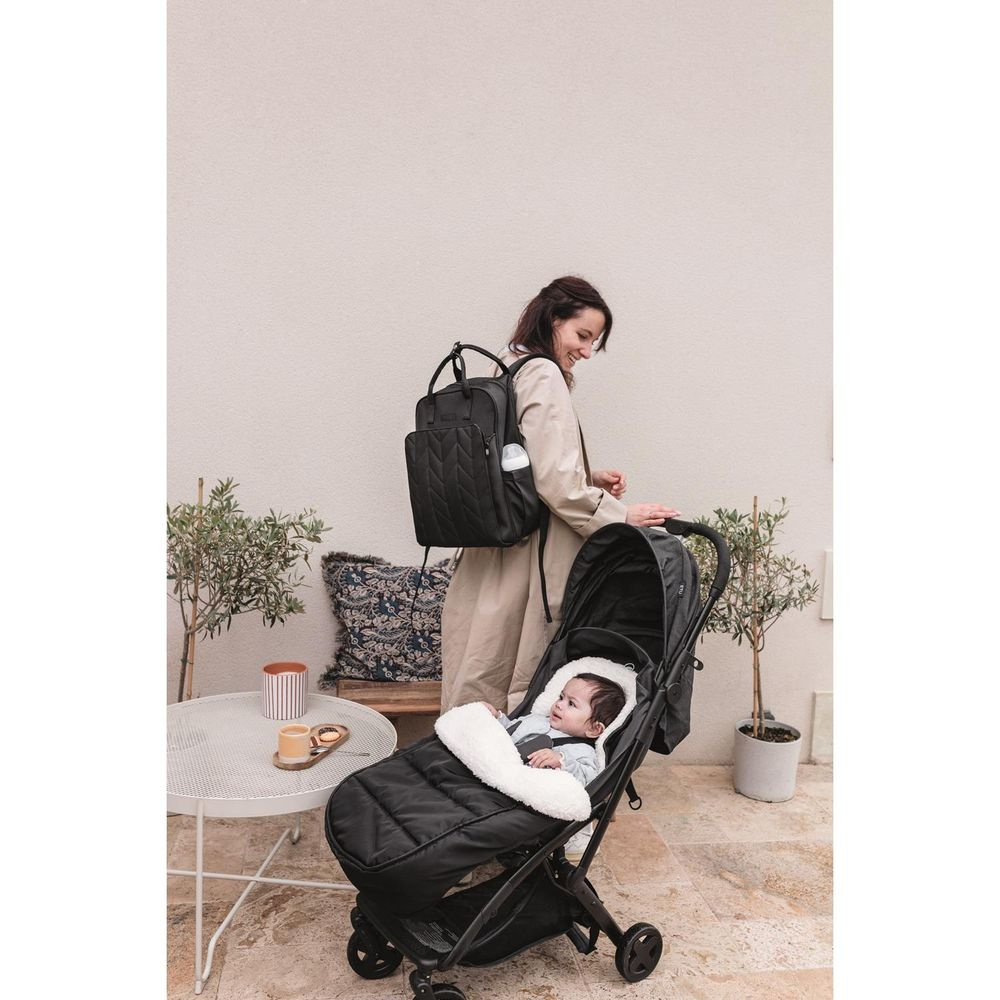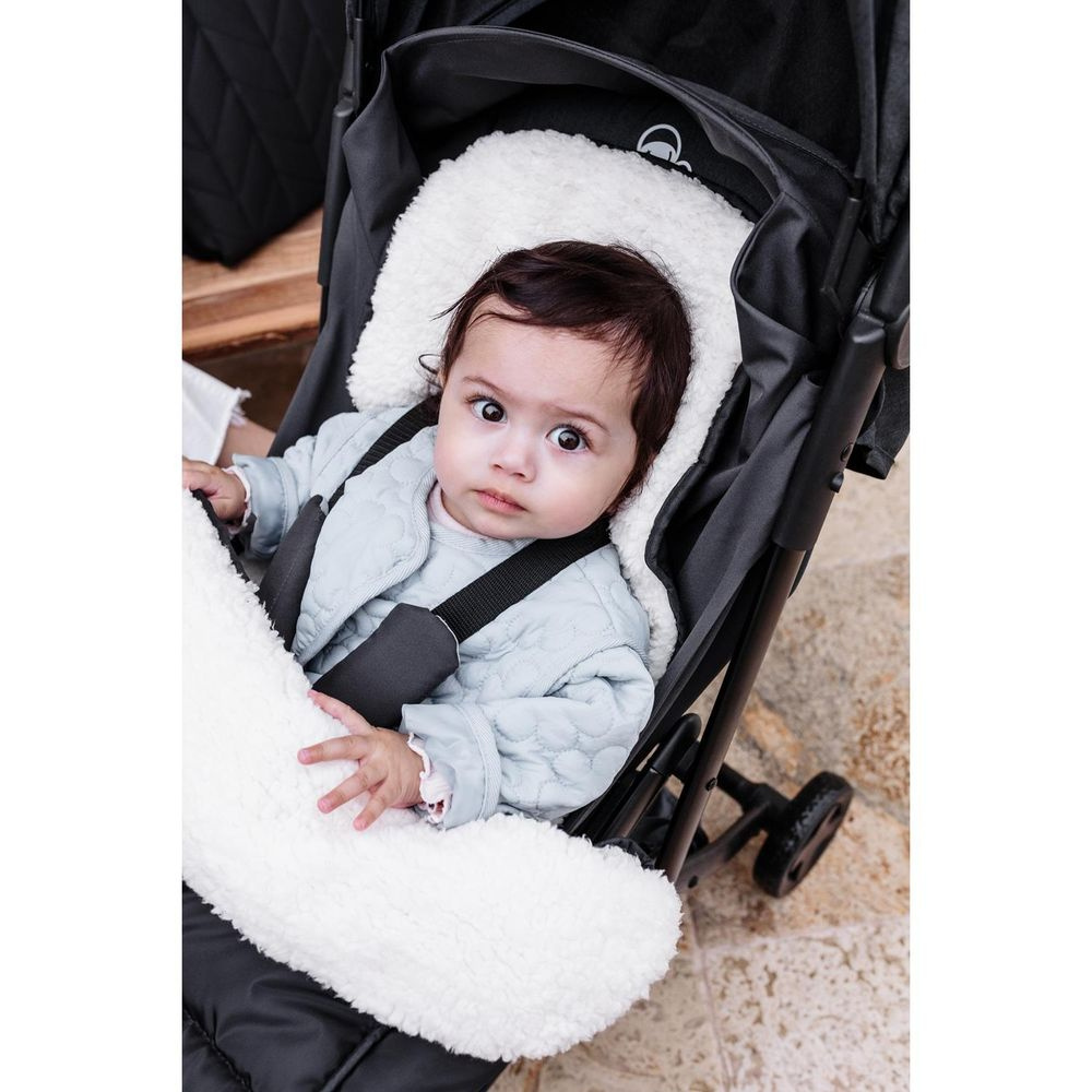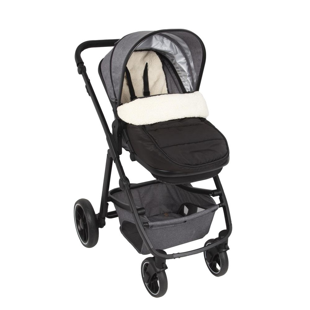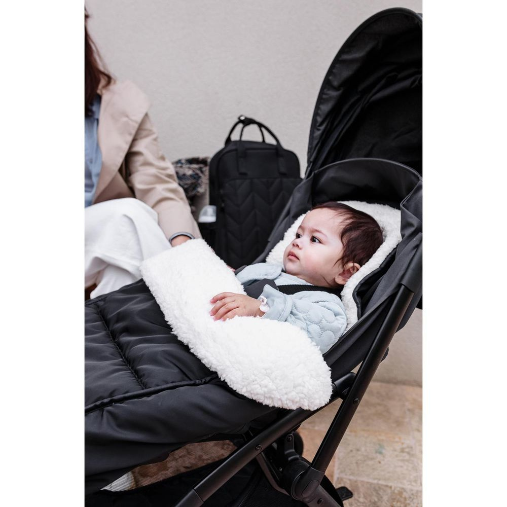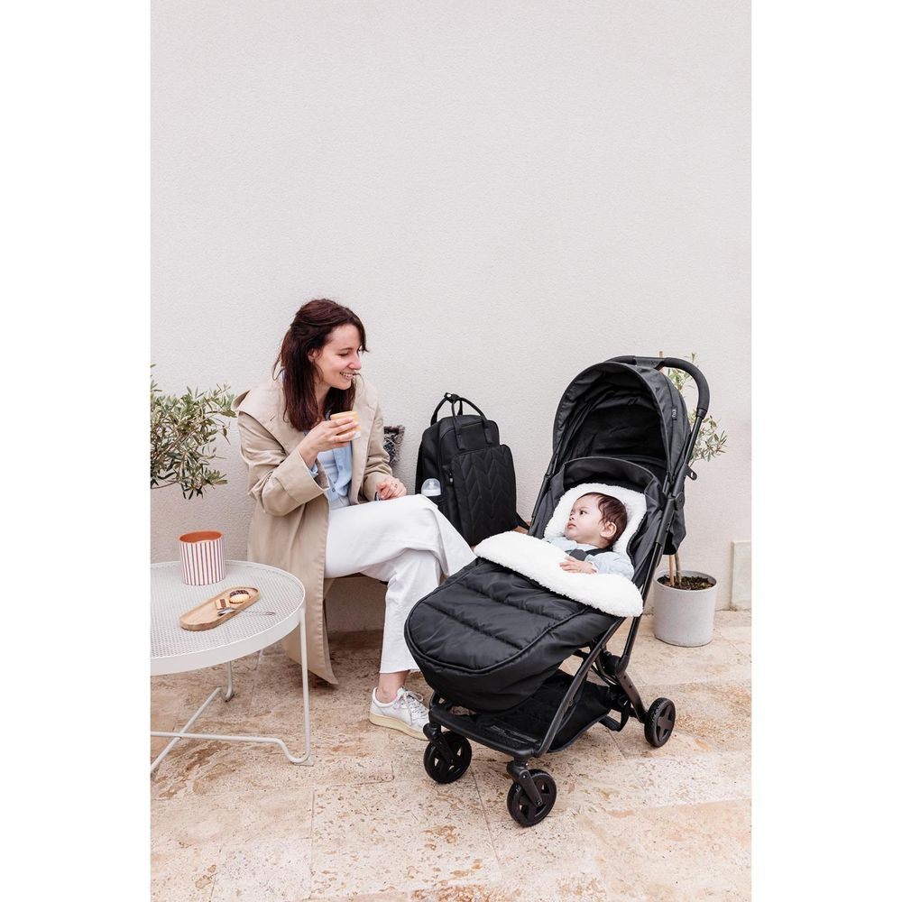 Chancelière universelle noire pour poussette de la marque Tinéo. Cette chancelière est très confortable avec son intérieur en sherpa effet mouton et tiendra au chaud votre bébé pendant vos promenades. Elle est compatible avec toutes les poussettes avec un harnais 3 points et 5 points. Le produit est lavable en machine. Le passage pour les sangles est intégré sur la chancelière.