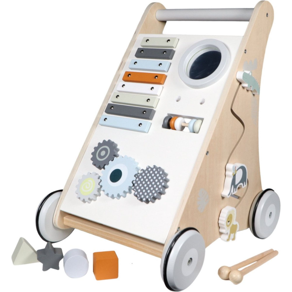 Optez pour le Chariot d'activités et de marche 12 mois et + de la marque Tryco. Laissez votre enfant explorer et apprendre avec le chariot d’activités Tryco. Conçu pour accompagner ses premiers pas, ce chariot combine stabilité et divertissement grâce à ses nombreuses activités intégrées. Entre les blocs à glisser, les engrenages à actionner, le hochet amusant et le jeu de formes à encastrer, chaque côté réserve une nouvelle découverte. Les pièces amovibles et colorées favorisent la motricité fine, la coordination et la curiosité. Solide et pratique, il aide bébé à se tenir debout et à avancer en toute confiance, tout en transformant l’apprentissage de la marche en une véritable aventure ludique.
