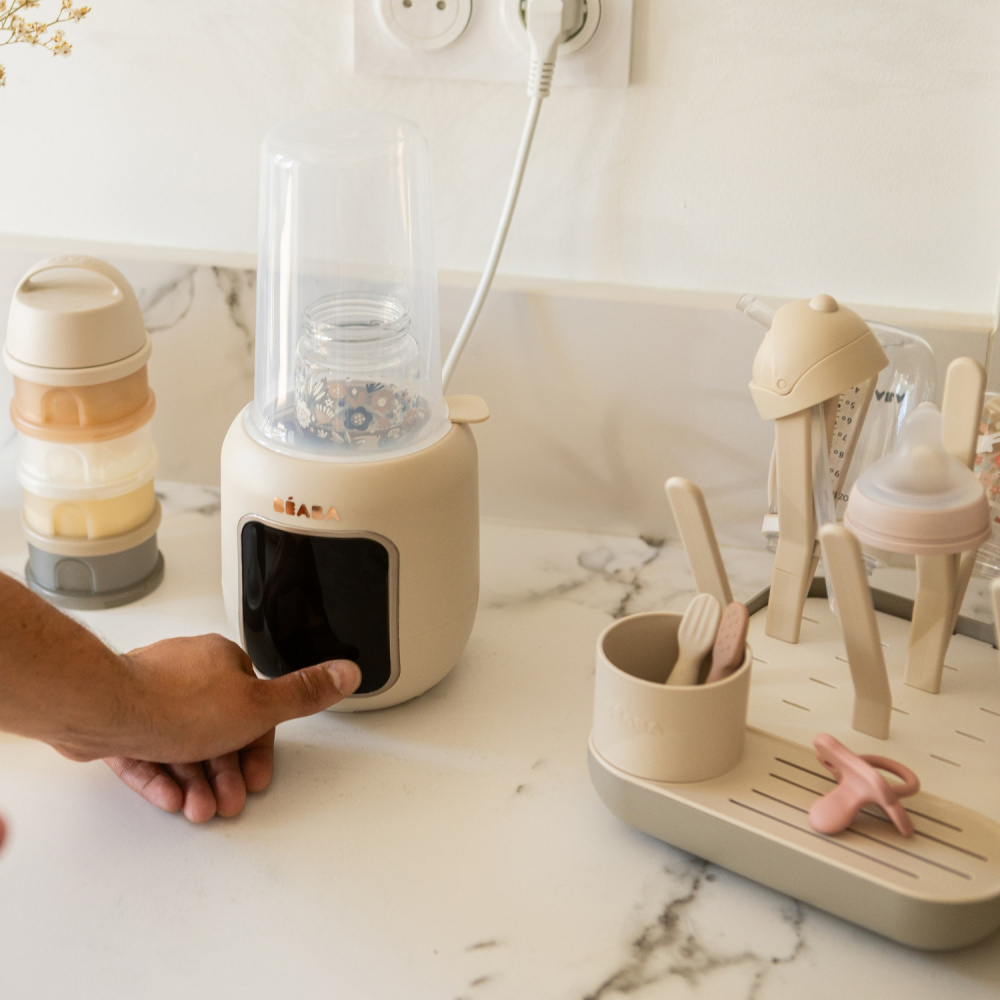 Simplifiez les repas de bébé avec le Chauffe biberon multifonction 5 en 1 multi milk argile de la marque Béaba, un appareil polyvalent qui chauffe, décongèle, maintient au chaud, stérilise et extrait la vapeur en toute simplicité. Grâce à son système de chauffe vapeur douce, il préserve les nutriments du lait maternel et assure une température homogène sans risque de surchauffe. Compatible avec la plupart des biberons, petits pots et sachets de lait maternel, il s’adapte à tous les besoins du quotidien. Intuitif avec ses réglages automatiques, compact et élégant avec son coloris Terre d’Argile, il devient un indispensable pour les parents en quête de praticité, de rapidité et de sécurité.