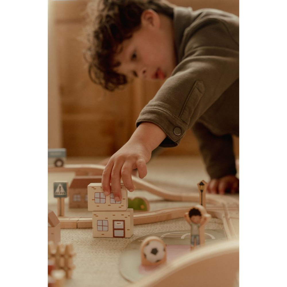 Le Circuit de train xxl en bois fsc de chez Little Dutch.vc C'est un set de jeu très complet, conçu pour permettre aux enfants de construire un monde miniature riche en aventures. Il s'agit d'un jouet emblématique de la marque, combinant la qualité du bois avec un design moderne et coloré. Ce circuit est bien plus qu'une simple voie ferrée : c'est un véritable kit de construction de ville.