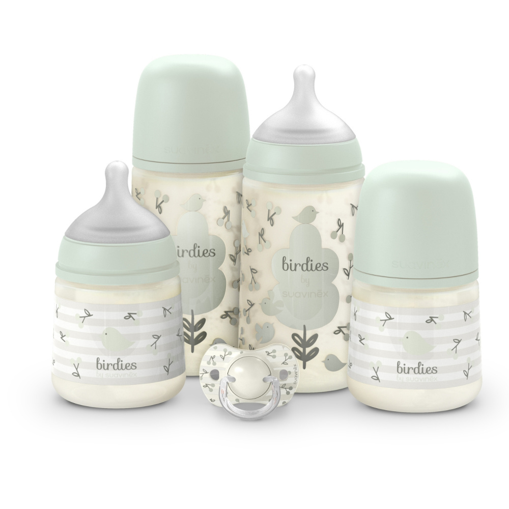 Coffret nouveau-né bébé birdies avec biberons et sucette sx pro vert