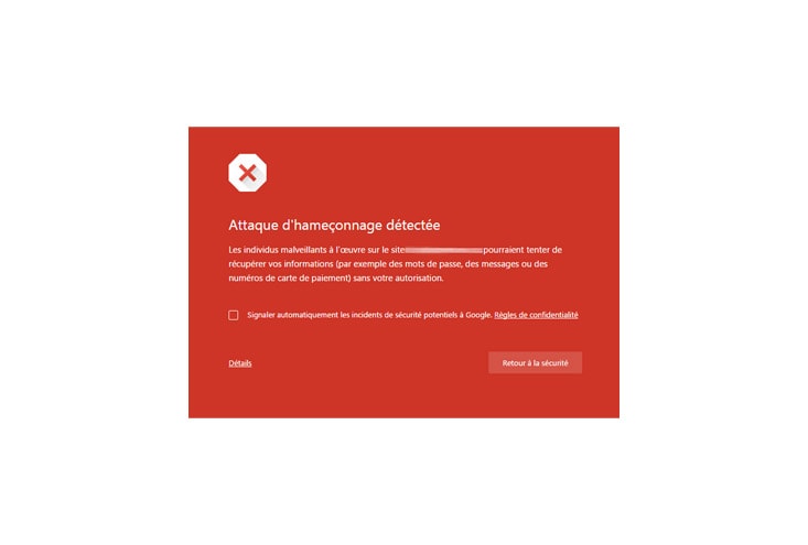 Les fonctions anti-phishing et anti-malware des navigateurs limitent fortement le risque de vol d'informations (« phishing ») ou d'infection via un téléchargement (« malware »), en vous informant par un message clairement visible lorsque le site présente un risque.