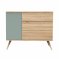 Pieds en bois coniques obliques, façades teintées sauge et bois : tous les codes du mobilier rétro sont réunis dans cette commode !