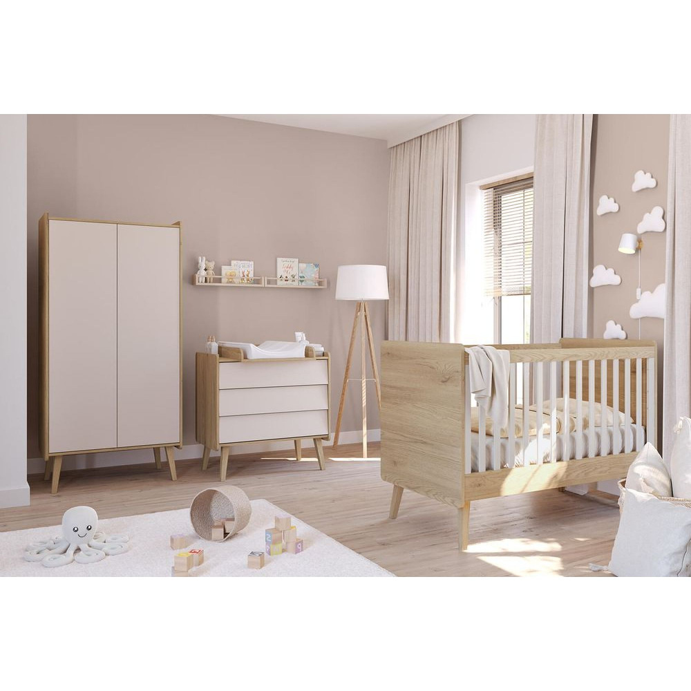 Découvrez la Commode vintage fresh chêne - sable beige, un meuble pratique au charme rétro qui apporte douceur et authenticité à la chambre de votre enfant. Avec ses façades en chêne et ses nuances beige sable, elle s’intègre harmonieusement dans une décoration naturelle et chaleureuse. Ses trois tiroirs spacieux et sa conception durable en font un indispensable pour organiser facilement les essentiels du quotidien