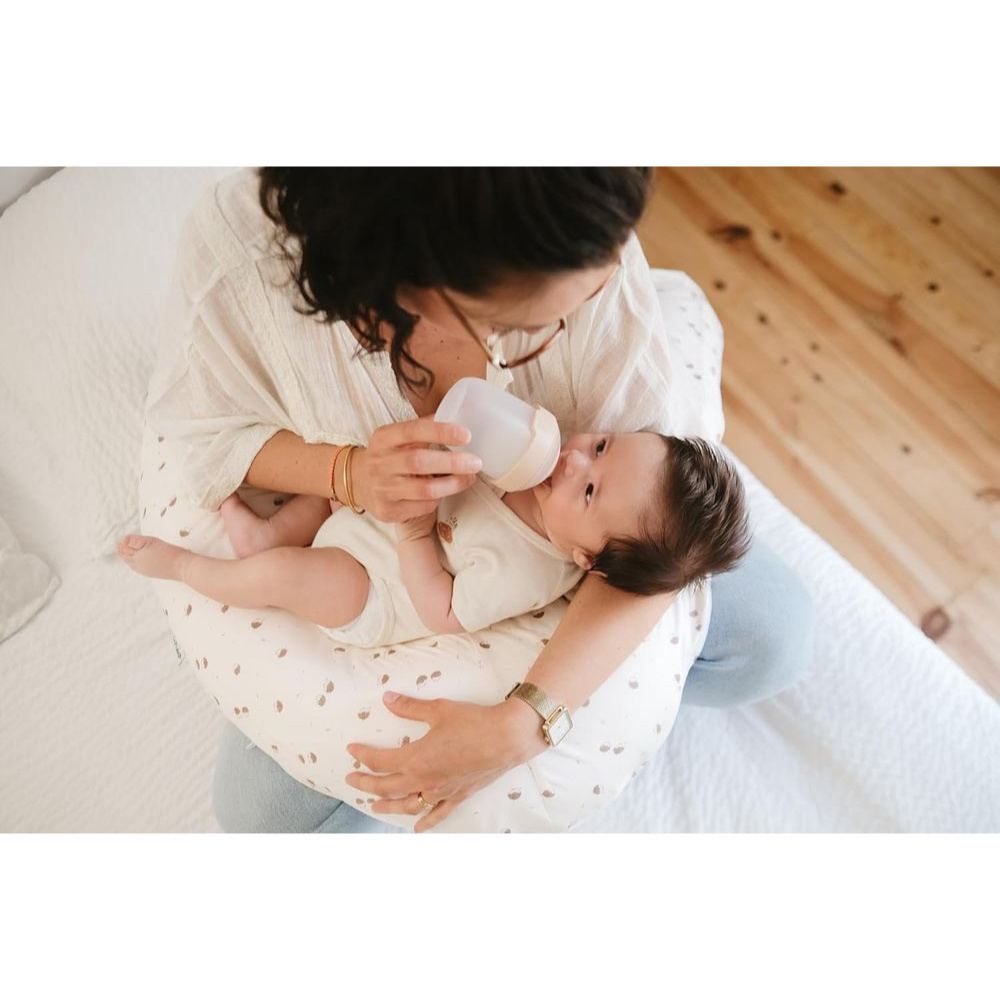 Coussin de maternité et d'allaitement jersey coton ecru / hérissons de la marque Tinéo. Ce coussin est utilisable dès la grossesse pour soulager votre dos et votre ventre. Il est garni de microbilles. Ensuite, il vous permettra d'allaiter votre bébé dans une position confortable pour vous et votre enfant. Le coussin est déhoussable et la housse est lavable en machine.