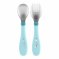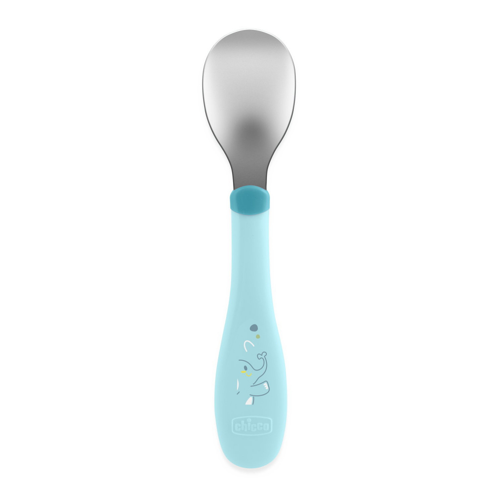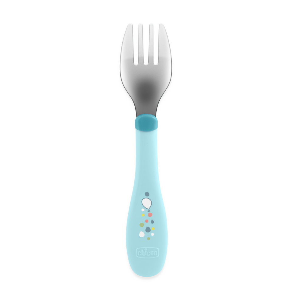 Les Couverts en métal bleu de chez Chicco. Ces couverts sont spécialement conçus pour accompagner l'enfant dans la phase de transition où il délaisse les couverts en plastique pour des couverts plus robustes, similaires à ceux des adultes, tout en restant parfaitement adaptés à ses besoins. ls sont parfaits pour aider l'enfant à développer sa motricité fine et à manger de manière autonome, en le préparant aux couverts d'adultes sans le frustrer.