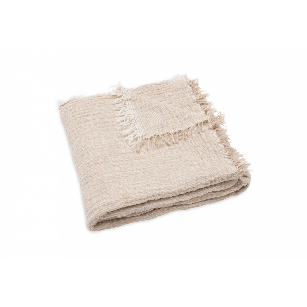 Découvrez la Couverture bébé 120x120 cm à franges olive et ivoire de la marque Jollein !